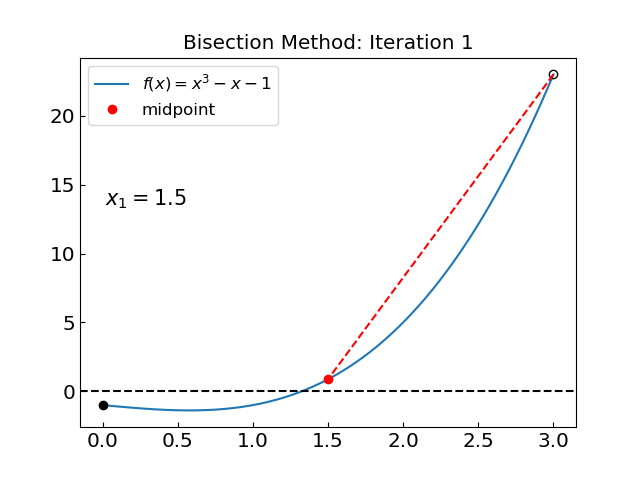 print("The solution is x = ", xroot, " obtained with ", last_bisection_iterations, " iterations")